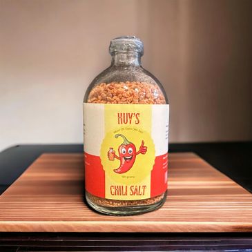 Huy's Chili Salt is a small-batch artisanal creation, meticulously crafted to capture the essence of authentic Vietnamese flavors. Our chili salt is coarse in texture, offering a satisfying crunch that enhances the overall taste experience. We use only simple natural ingredients : Coarse sea salt, dried and roasted chilis, dried garlic and dried shrimp.